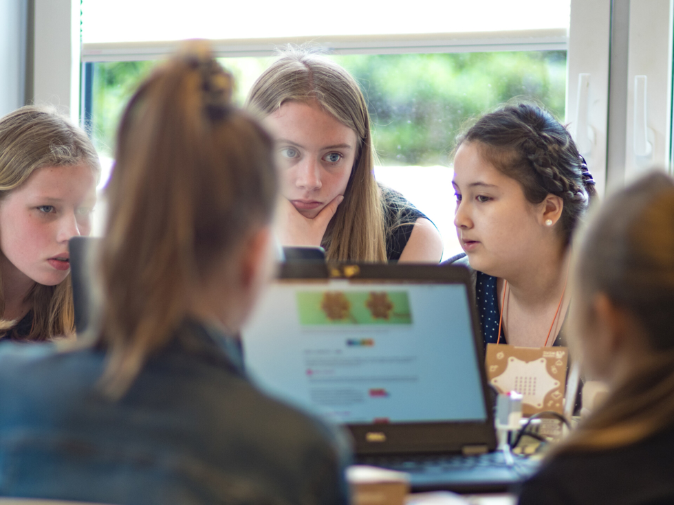 Der Girls'Day bei erminas war innerhalb von vier Tagen ausgebucht. Sechs Mädchen haben am Girls'Day die Chance, mit dem Mini-Computer Calliope digitale Lösungswege zu entwickeln. Im Fokus stehen die Bedürfnisse der Menschen in Hamburg.